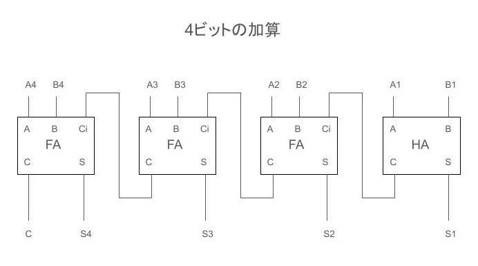 2進数の加算・減算はFAとHAを使用することで実現できます。